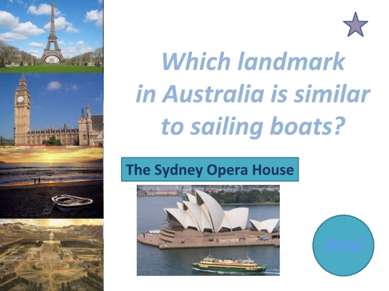 Stop!Which landmark in Australia is similar to sailing boats? The Sydney Opera House