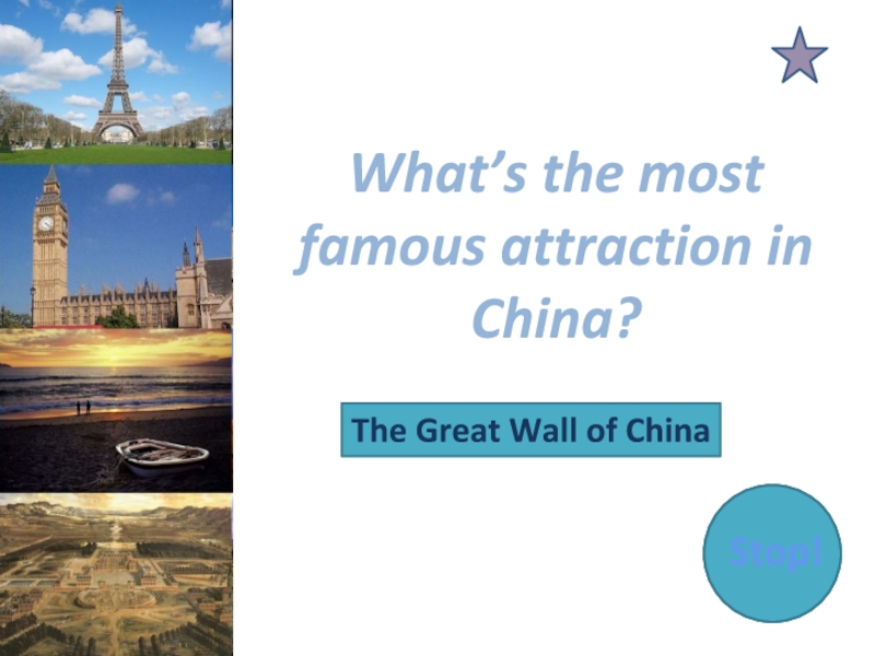 What’s the mostfamous attraction inChina? The Great Wall of ChinaStop!