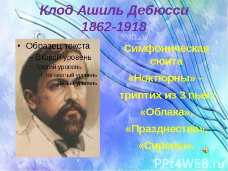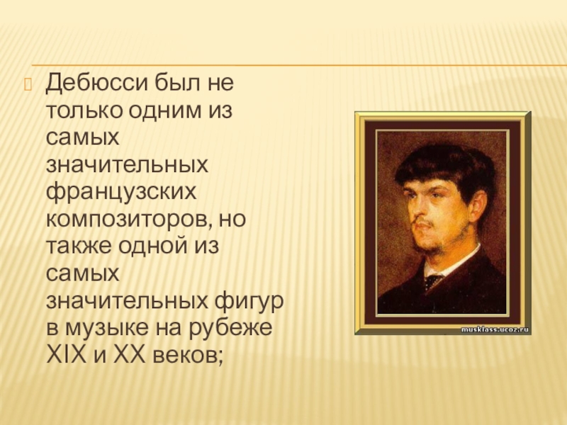 Дебюсси был не только одним из самых значительных французских композиторов, но также одной из самых значительных фигур в музыке на рубеже XIX и XX веков;