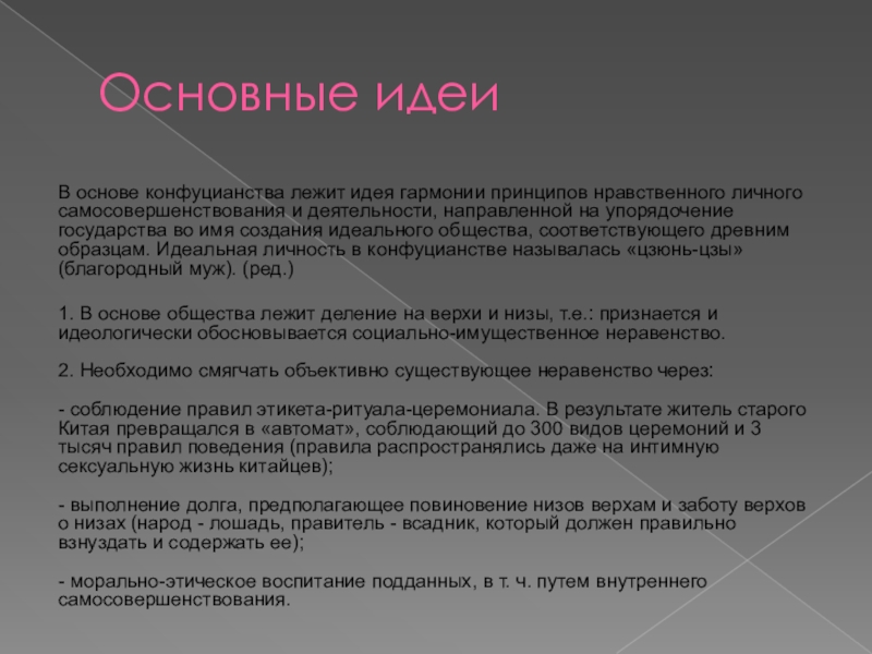 идеального общества, соответствующего древним образцам. Идеальная личность в конфуцианстве называлась «цзюнь-цзы» (благородный муж). (ред.)