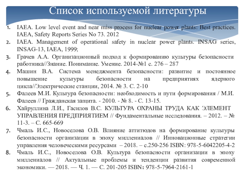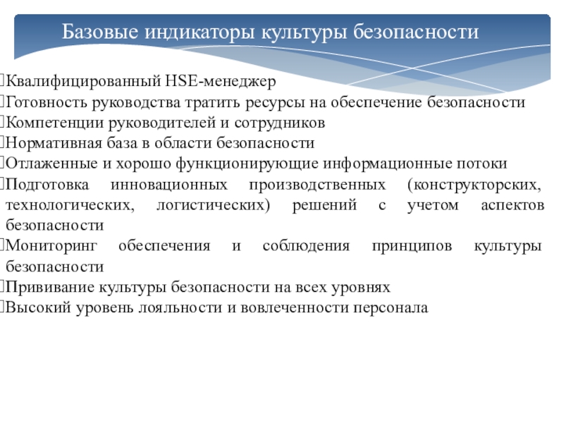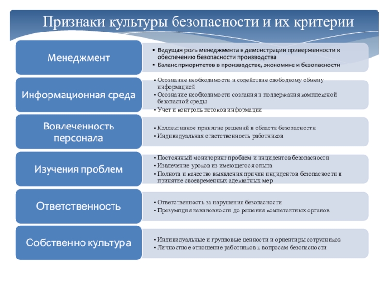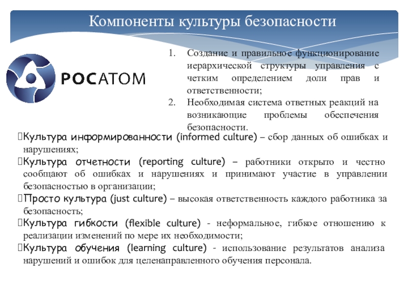 Просто культура (just culture) – высокая ответственность каждого работника за безопасность;
