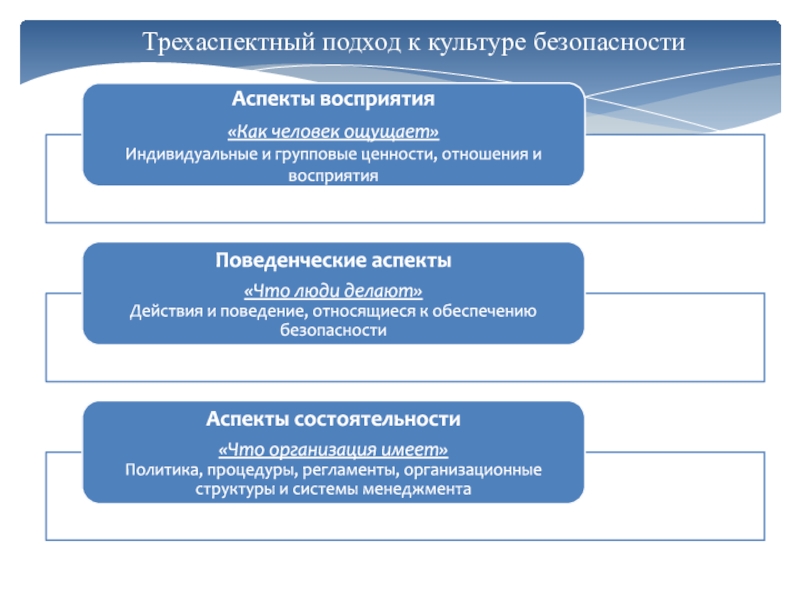 «Культура безопасности - это такой набор характеристик и аттитюдов организаций, а также отдельных лиц, который устанавливает, что проблемам безопасности АС, как обладающим высшим приоритетом, уделяется внимание, определяемое их значимостью»