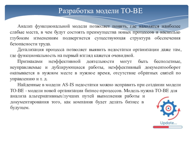 анализа альтернативных/лучших путей выполнения работы и документирования того, как компания будет делать бизнес в будущем.