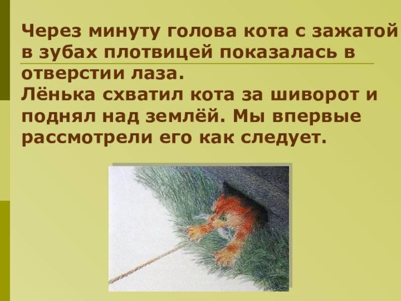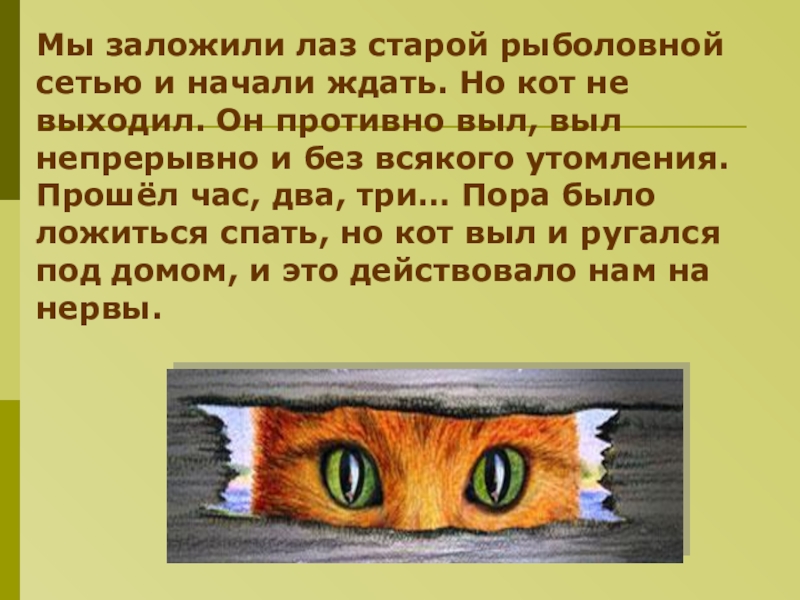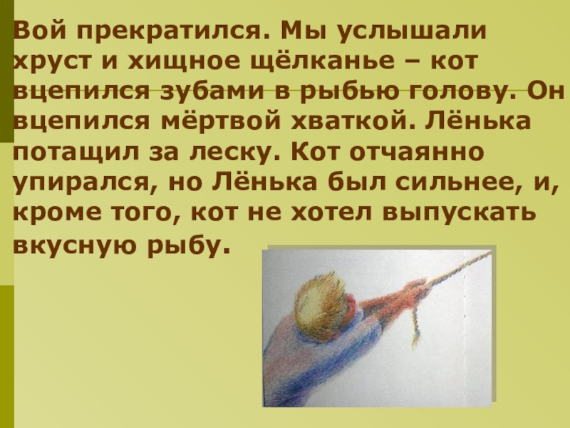 Слайд 11Вой прекратился. Мы услышали хруст и хищное щёлканье – кот