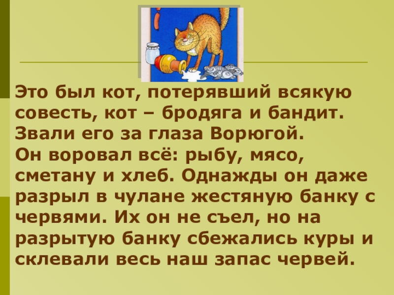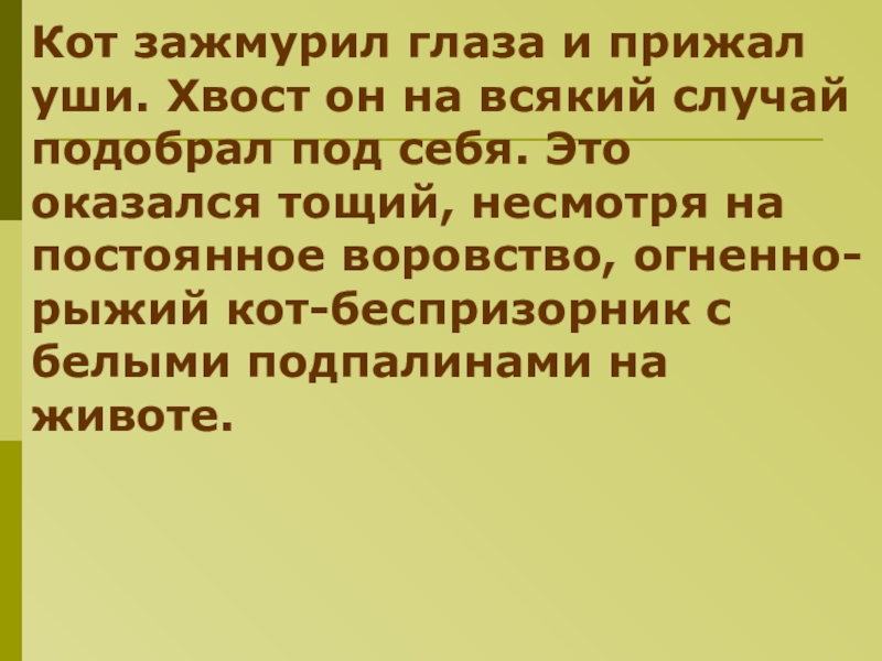 Слайд 3Это был кот, потерявший всякую совесть, кот – бродяга и