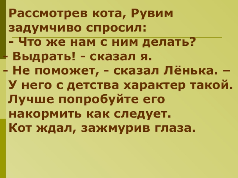Слайд 14Рассмотрев кота, Рувим задумчиво спросил: