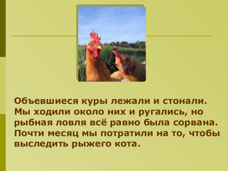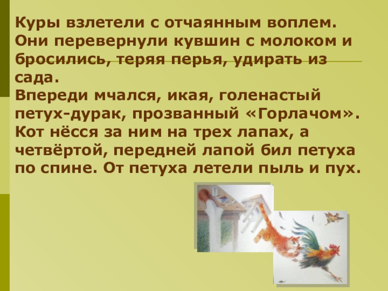Слайд 18Куры взлетели с отчаянным воплем. Они перевернули кувшин с молоком