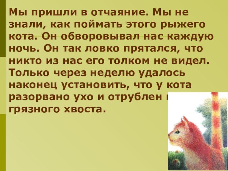 рыжего кота. Он обворовывал нас каждую ночь. Он так ловко