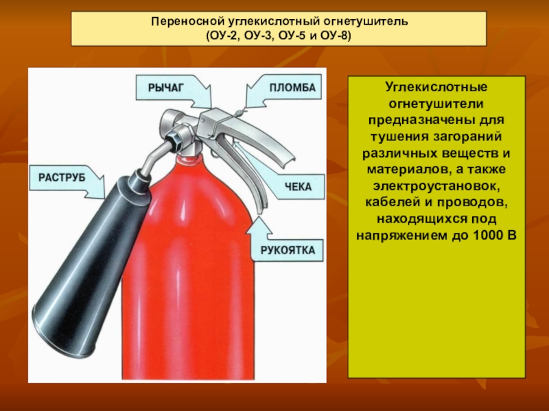 1.Огнетушители углекислотные. Устройство, принцип действия, порядок применения.