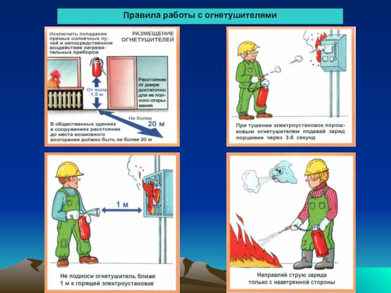 ними и порядок их применения, техническое обслуживание и перезарядка.