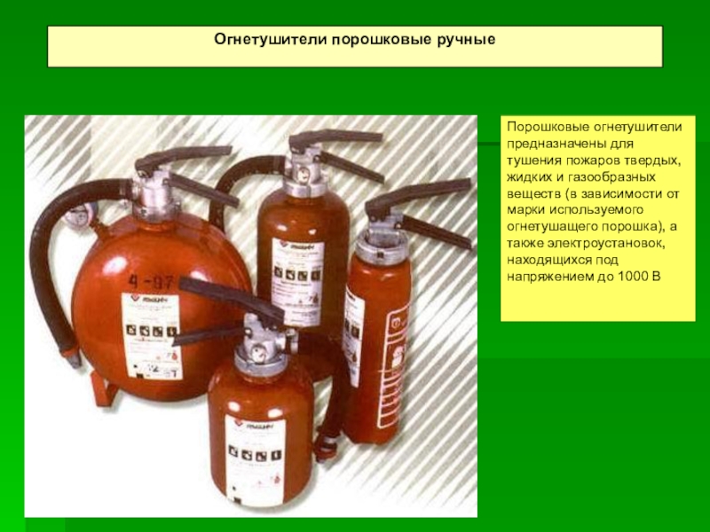 Порошковые огнетушители предназначены для тушения пожаров твердых, жидких