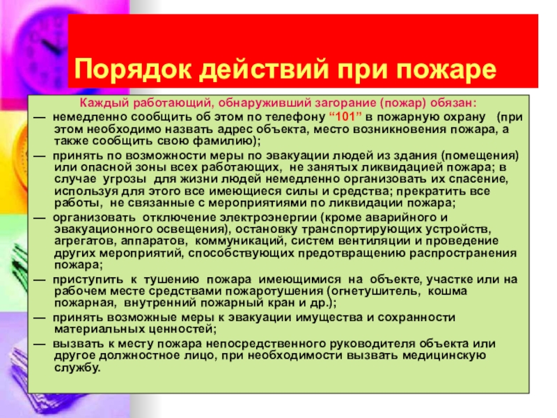 Каждый работающий, обнаруживший загорание (пожар) обязан: