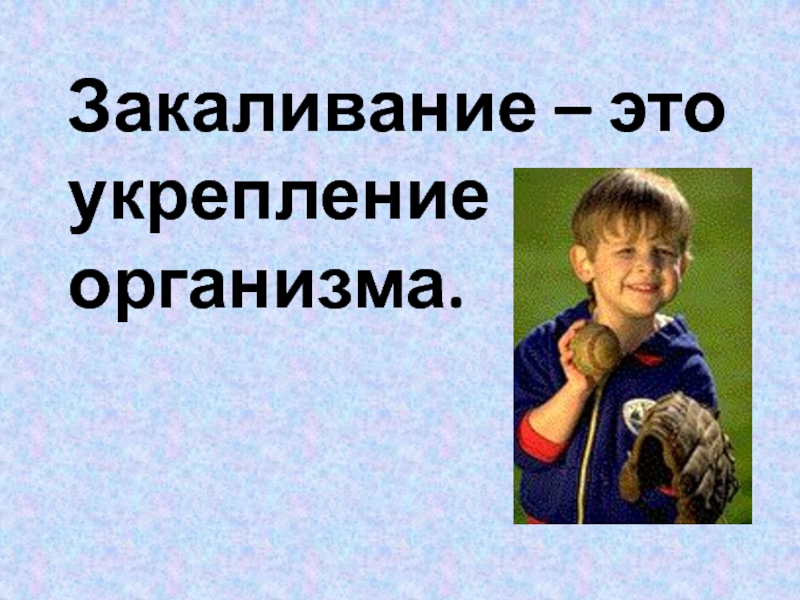 Слайд 4Закаливание – это укрепление организма.