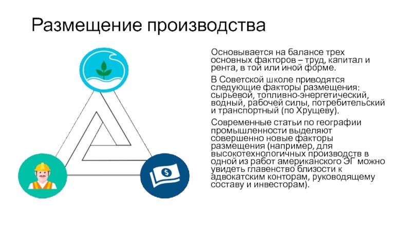 «Промышленное предприятие стремится занять наиболее выгодное место по отношению к источникам сырья и рынку рабочей силы, обеспечивающее наименьшие издержки для предпринимателей»