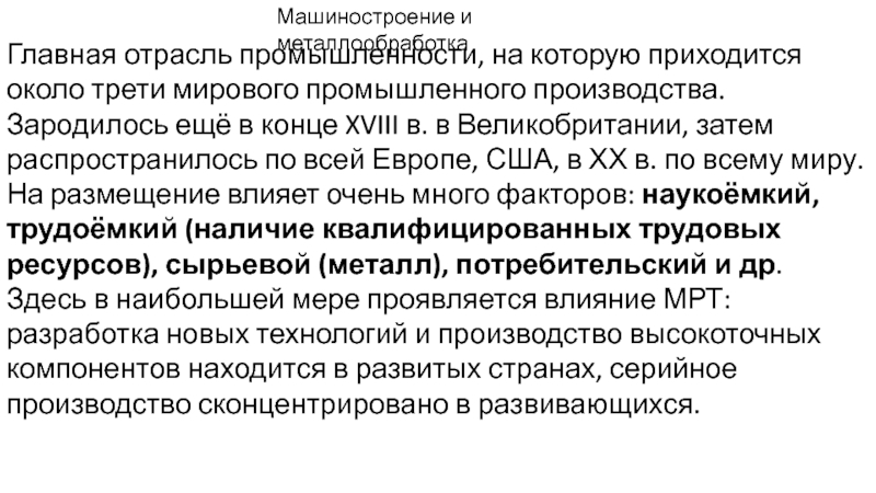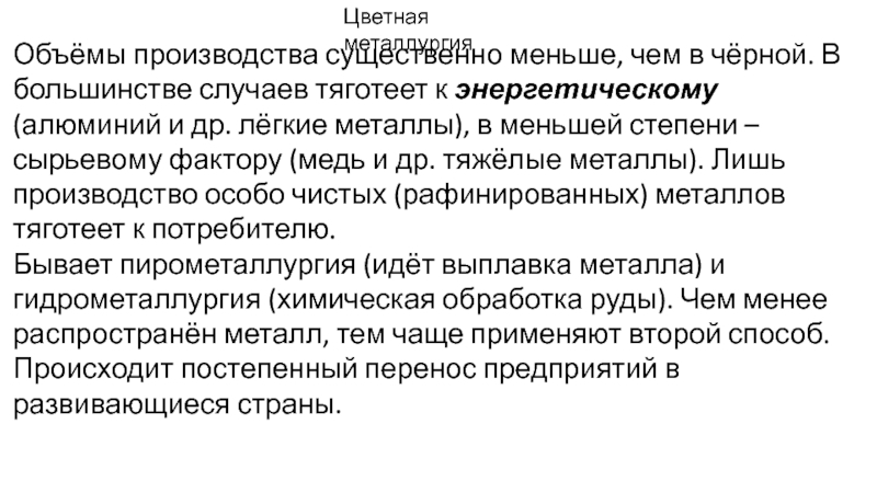 меньшей степени – сырьевому фактору (медь и др. тяжёлые металлы). Лишь производство особо чистых (рафинированных) металлов тяготеет к потребителю.