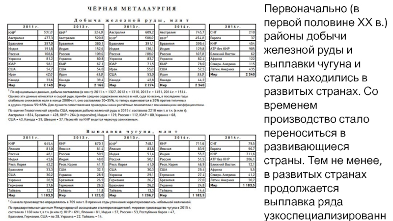 Слайд 29Первоначально (в первой половине ХХ в.) районы добычи железной руды
