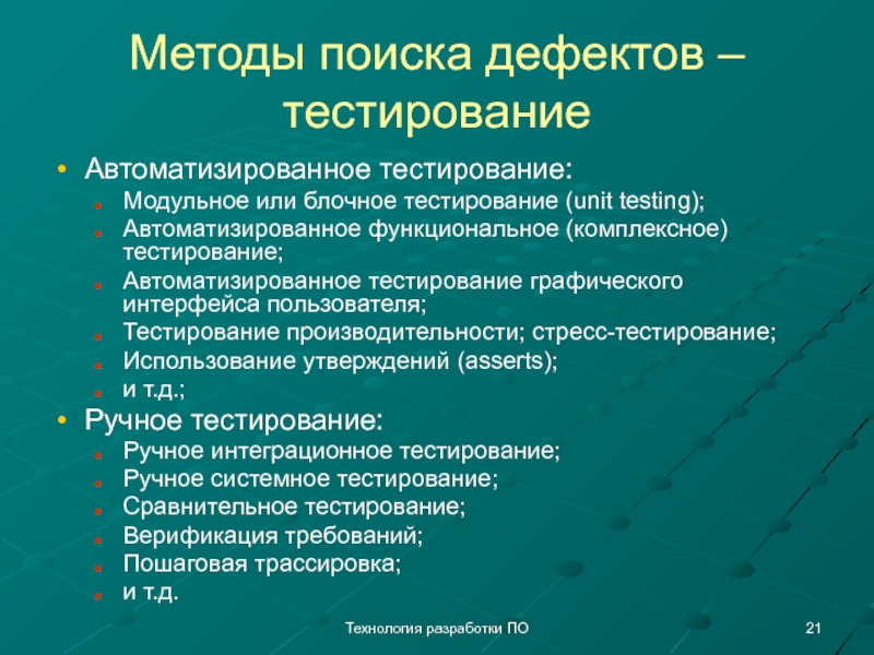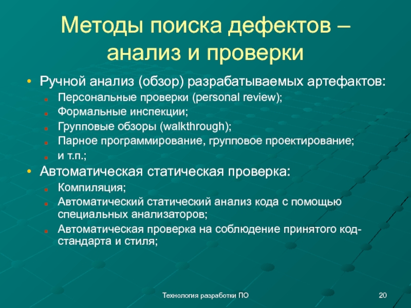 Борьба за качество ПО есть борьба с дефектами в разработке ПО
