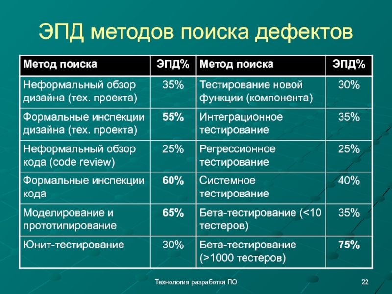 Каждую фазу поиска дефектов можно рассматривать как некий фильтр, который удерживает некую часть дефектов, а весь жизненный цикл, как систему фильтров