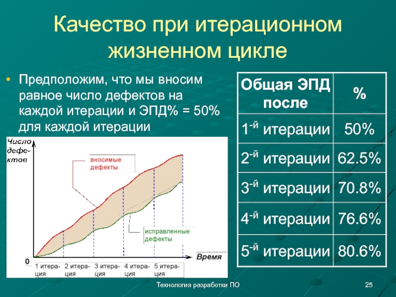 вносим равное число дефектов на каждой итерации и ЭПД% =