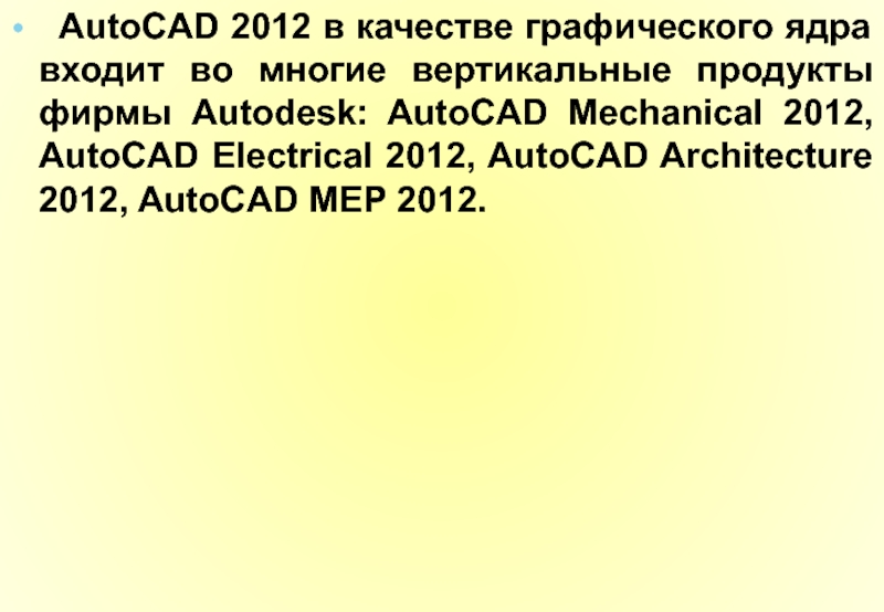 Слайд 21 AutoCAD 2012 в качестве графического ядра входит во многие