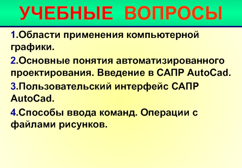Слайд 4УЧЕБНЫЕ ВОПРОСЫ