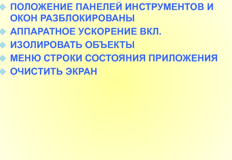 Слайд 68 Кнопка очистки экрана или Вид-Очистить экран применяется для расширения