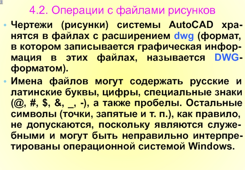 Чертежи (рисунки) системы AutoCAD хра-нятся