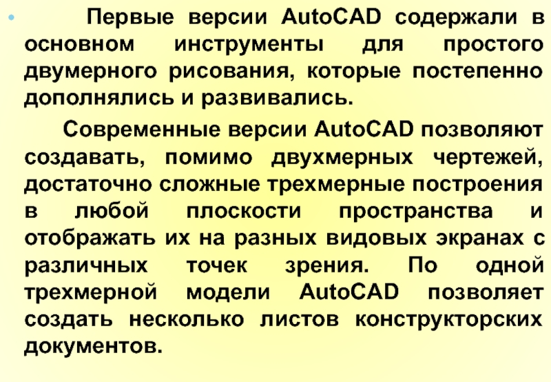 Слайд 20 Первые версии AutoCAD содержали в основном инструменты