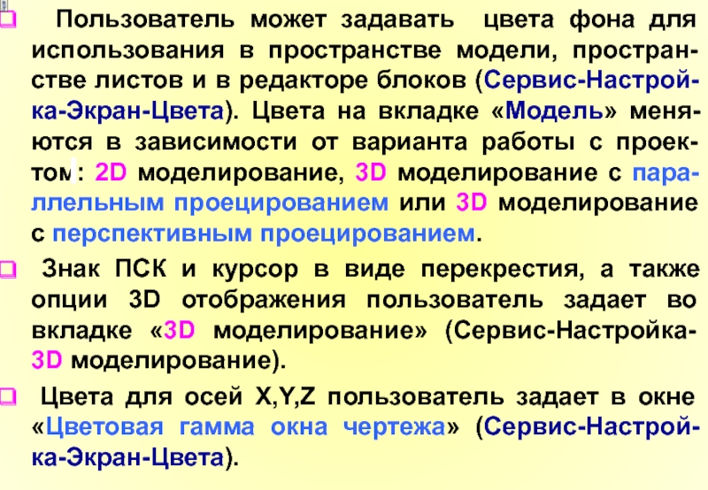 модели, простран-стве листов и в редакторе блоков (Сервис-Настрой-ка-Экран-Цвета). Цвета на