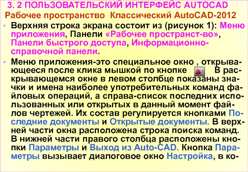 Слайд 24 3.1 ЗАПУСК СИСТЕМЫ AUTOCAD