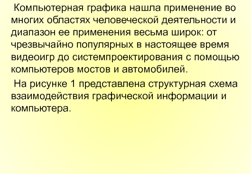 Слайд 9 Компьютерная графика нашла применение во многих областях человеческой деятельности