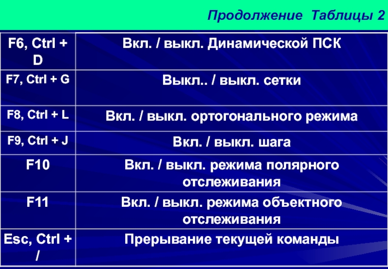 Слайд 62Таблица 2 – Функциональные клавиши AutoCAD