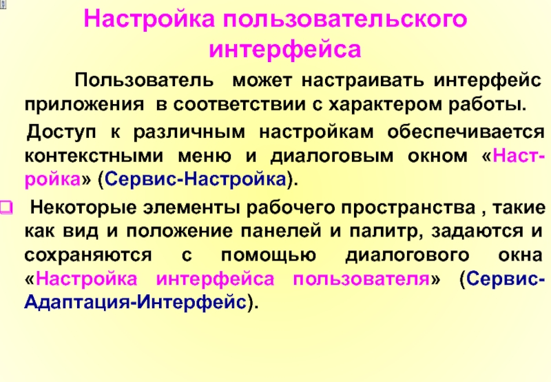 Слайд 66Настройка пользовательского интерфейса