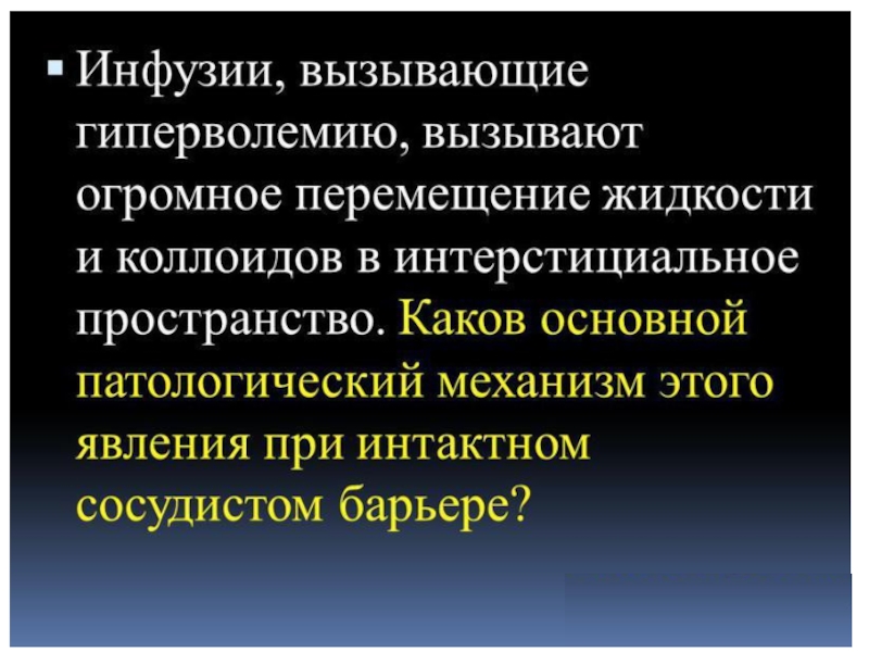 состав (коллоид, кристаллоид), «капиллярную утечку», вторичный отек, замедление диуреза.