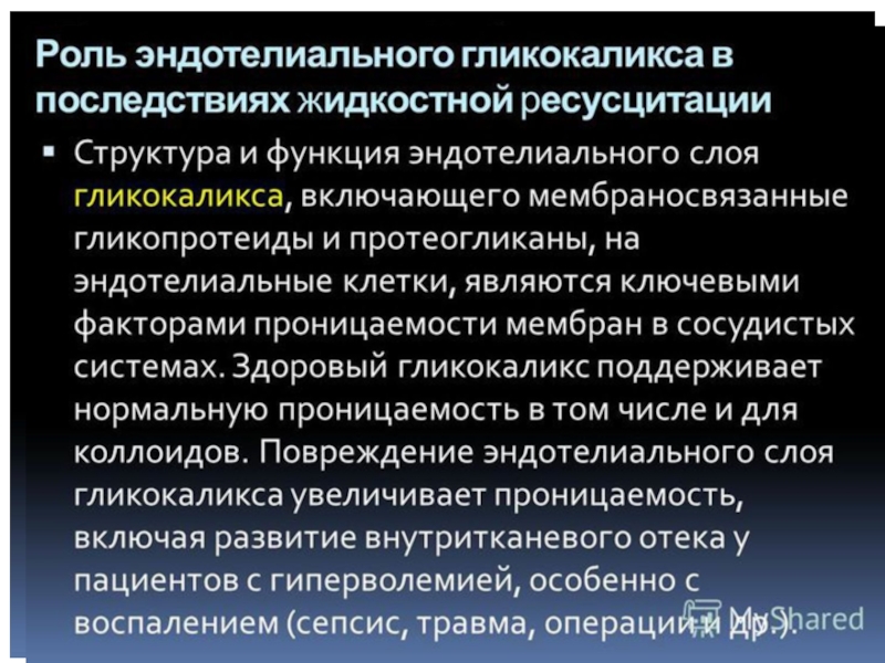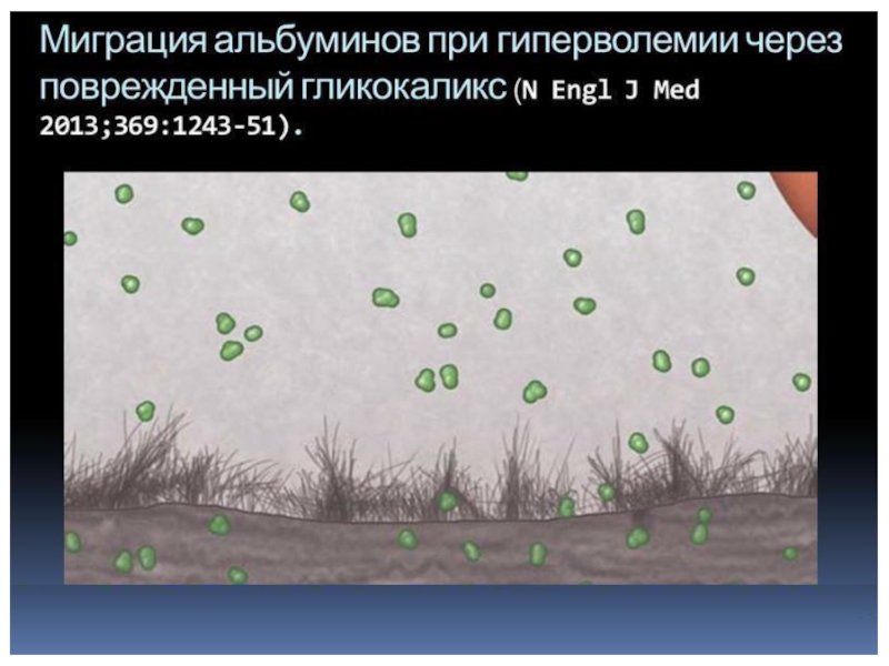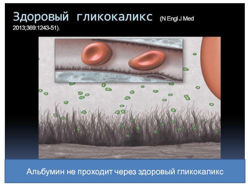Слайд 24Альбумин не проходит через здоровый гликокаликс