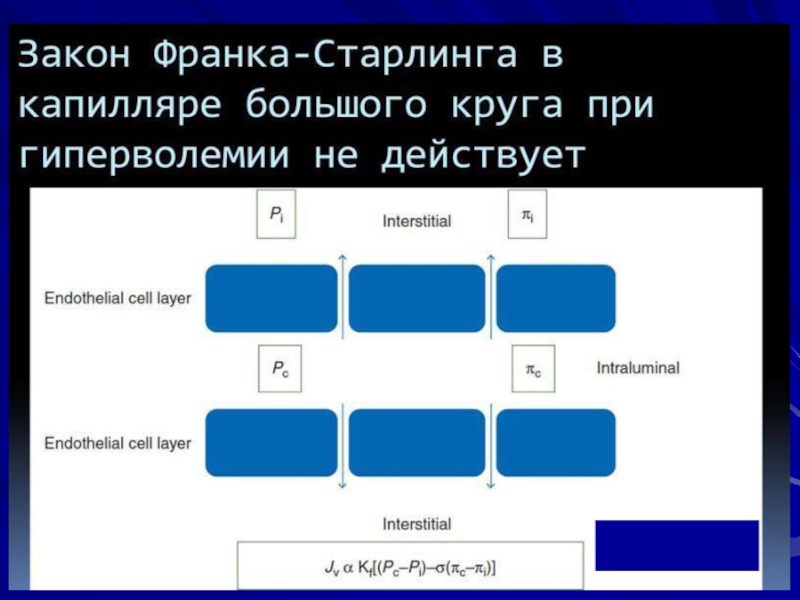 Слайд 19Переход жидкости через стенку капилляра между внутри- и внесосудистым пространством