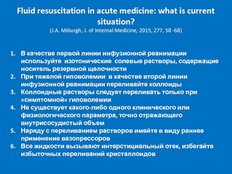 Слайд 30Fluid resuscitation in acute medicine: what is current situation?