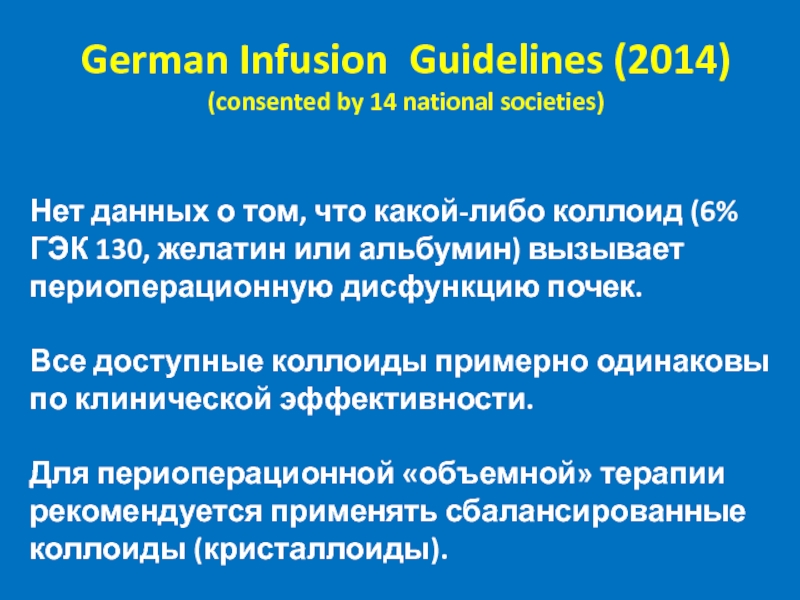 Для периоперационной «объемной» терапии рекомендуется применять сбалансированные коллоиды (кристаллоиды).