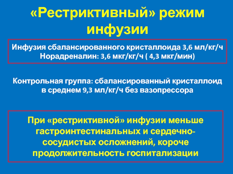 При «рестриктивной» инфузии меньше гастроинтестинальных и сердечно-сосудистых осложнений, короче продолжительность госпитализации