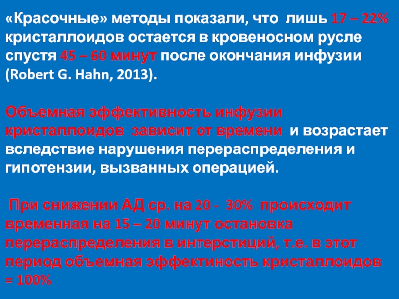 Слайд 13«Красочные» методы показали, что лишь 17 – 22% кристаллоидов остается