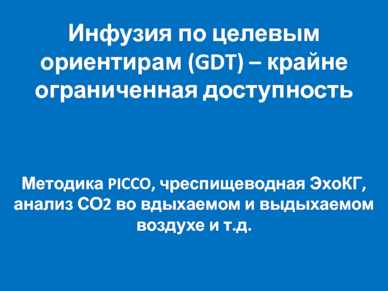 Слайд 9Инфузия по целевым ориентирам (GDT) – крайне ограниченная доступность