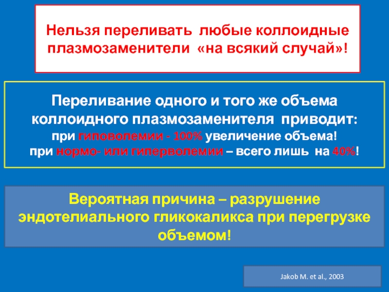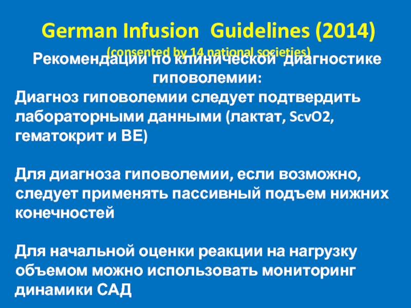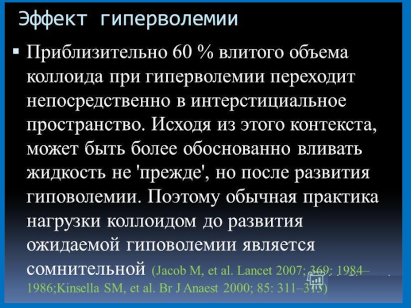 Коллоидные растворы следует переливать только при «симптомной» гиповолемии
