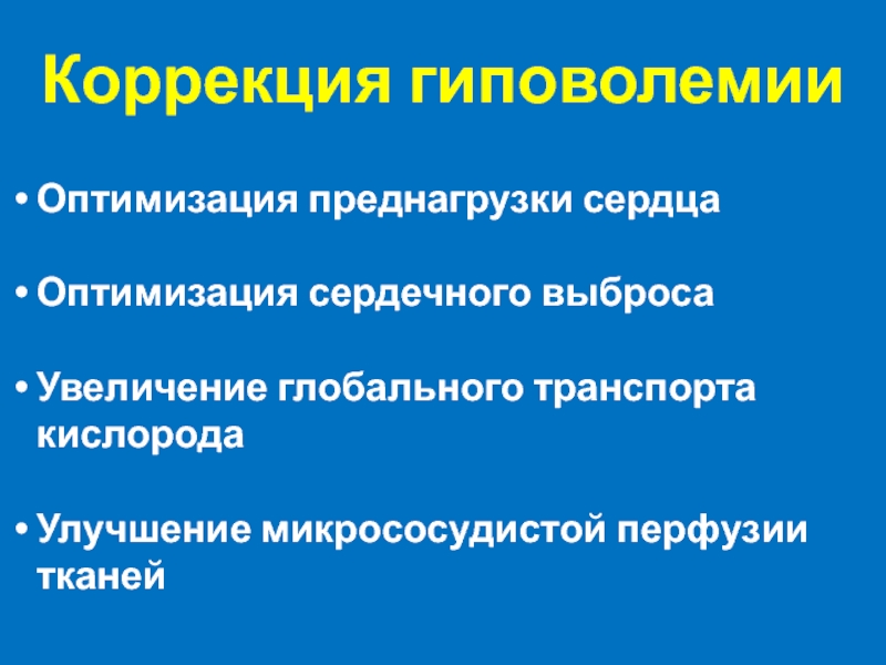 Диагноз гиповолемии следует подтвердить лабораторными данными (лактат, ScvO2, гематокрит