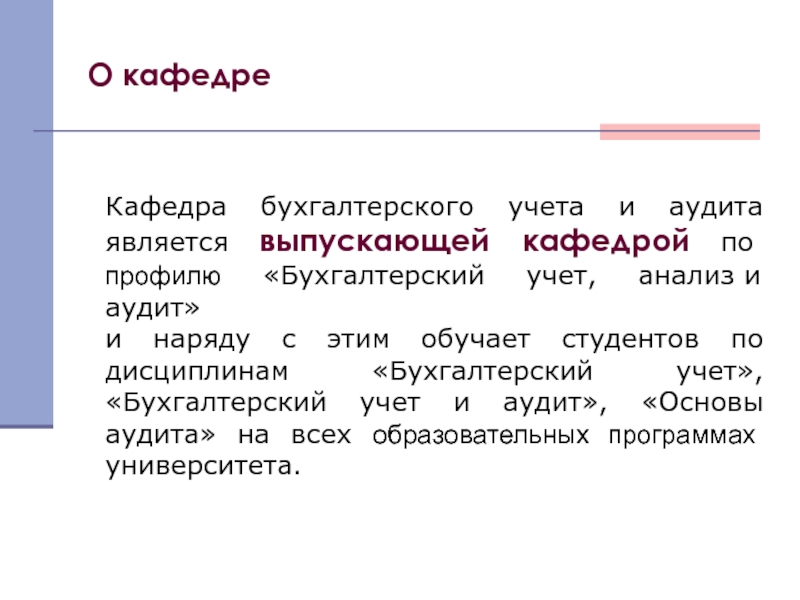 Слайд 1Кафедра бухгалтерского учета и аудита