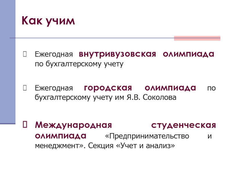 Ежегодная внутривузовская олимпиада по бухгалтерскому учету