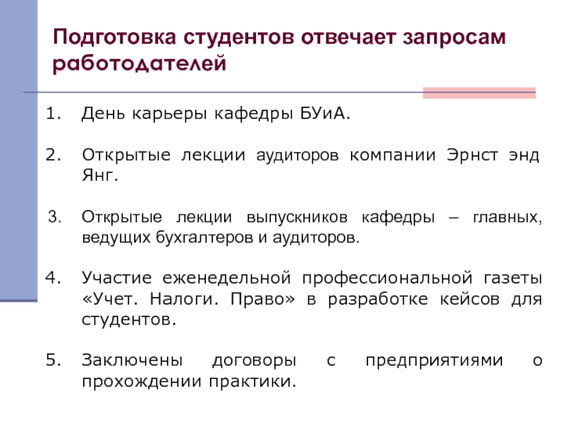 Слайд 11Подготовка студентов отвечает запросам работодателей