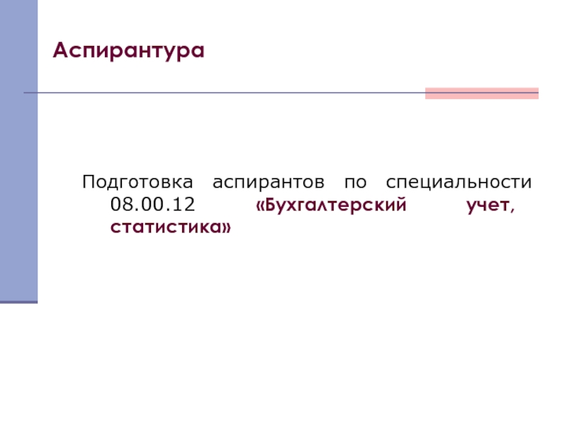 Подготовка аспирантов по специальности 08.00.12 «Бухгалтерский учет, статистика»