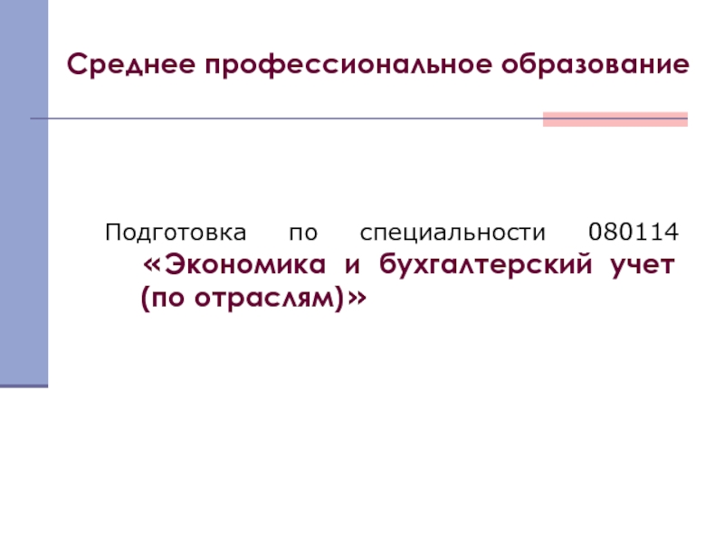 Подготовка по специальности 080114 «Экономика и бухгалтерский учет