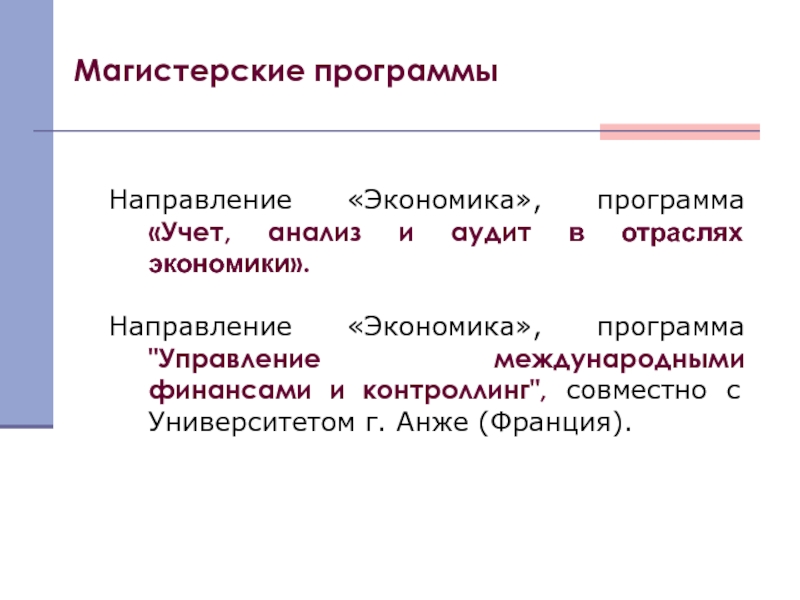 Направление «Экономика», программа «Учет, анализ и аудит в отраслях