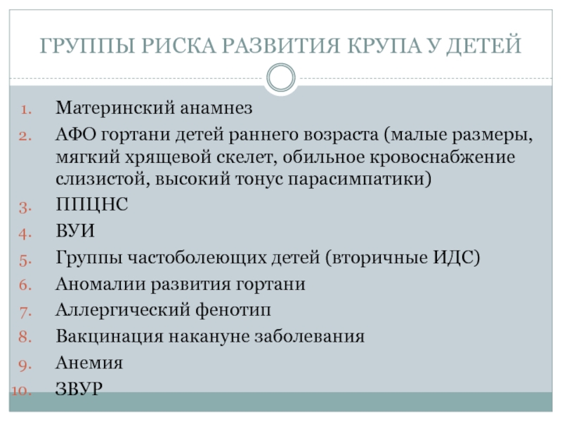 Слайд 4ГРУППЫ РИСКА РАЗВИТИЯ КРУПА У ДЕТЕЙ
